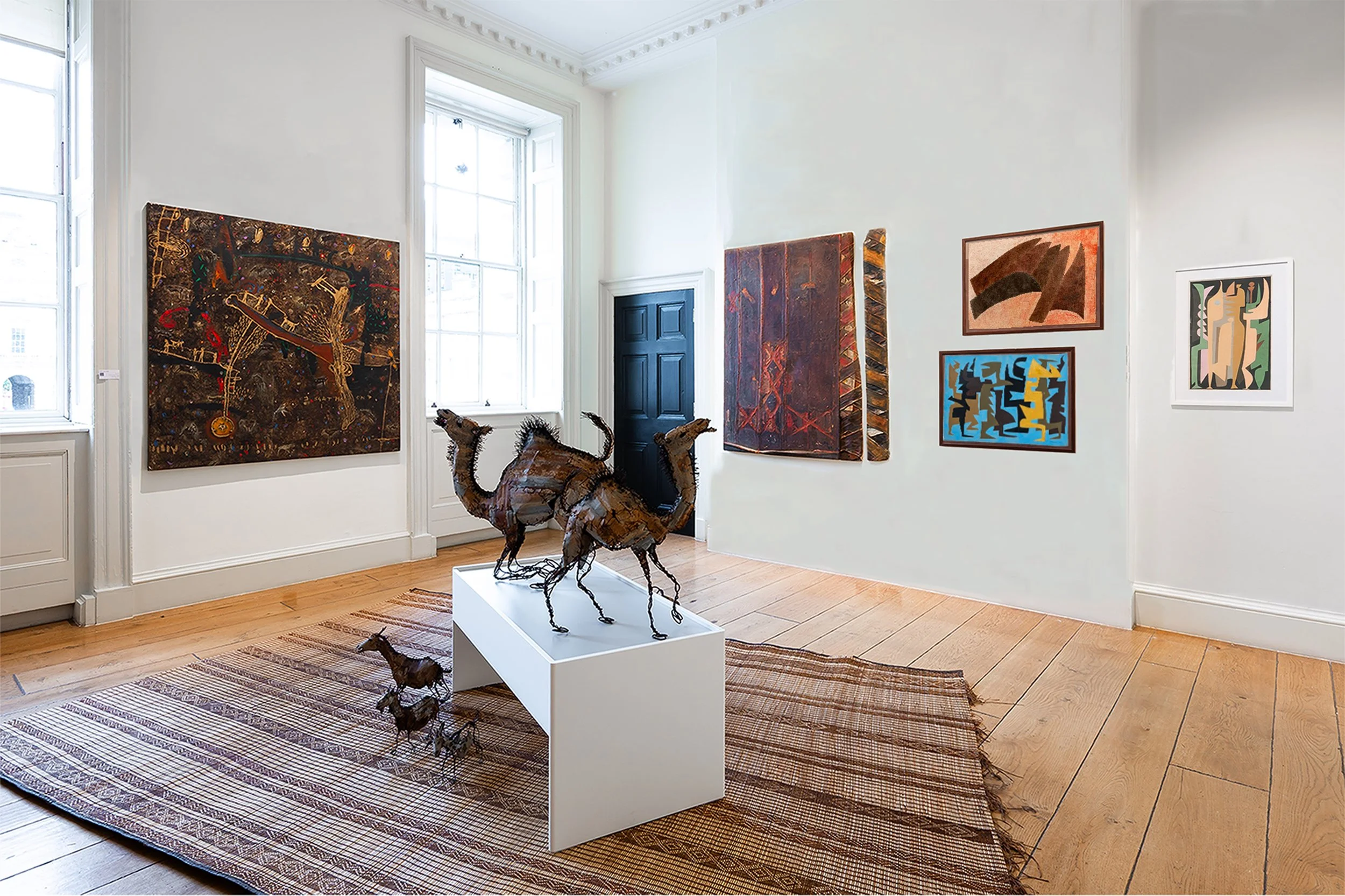 À l’occasion de 1-54 London, la galerie présente un projet qui interroge les filiations esthétiques et intellectuelles associées à l’École de Dakar, mouvement emblématique de la modernité artistique au Sénégal et en Afrique de l’Ouest. L’exposition propose un dialogue entre plusieurs générations d’artistes, explorant les continuités et les réinterprétations possibles de cet héritage.
