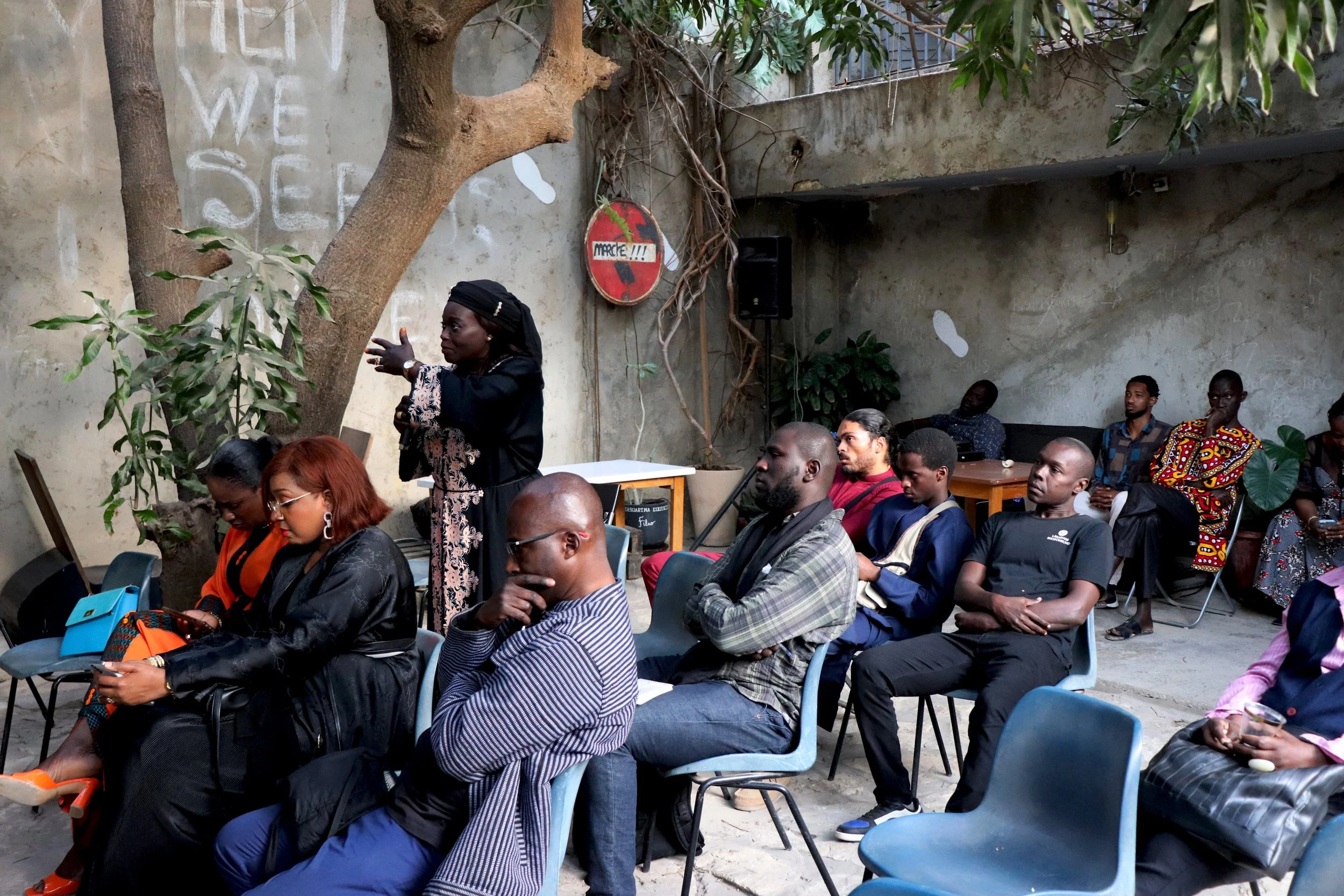 La galerie est heureuse de partager quelques images de la conversation tenue à RAW Material Company dans le cadre de la journée Pencco, organisée au sein du programme public Politique culturelle, à laquelle ont participé Océane Harati et Viyé Diba.