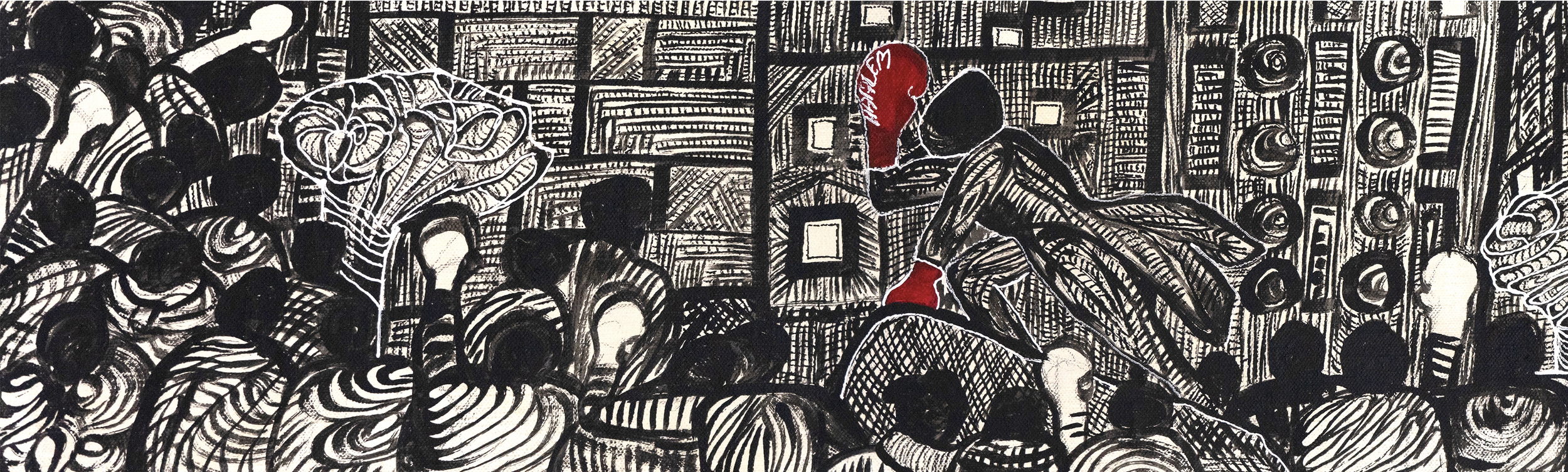 Sa récente exposition à Harlem, à New York, consacrée à l’imaginaire de la boxe, portait avec justesse le titre Love and Hate. Elle affirme que la quête de survie est fondamentalement aussi une quête d’amour et d’auto-affirmation, tant de sa propre dignité que de celle de sa culture. Son antagonisme est à la fois extérieur et intérieur — comme ce fut le cas pour le premier champion du monde africain, Battling Siki.