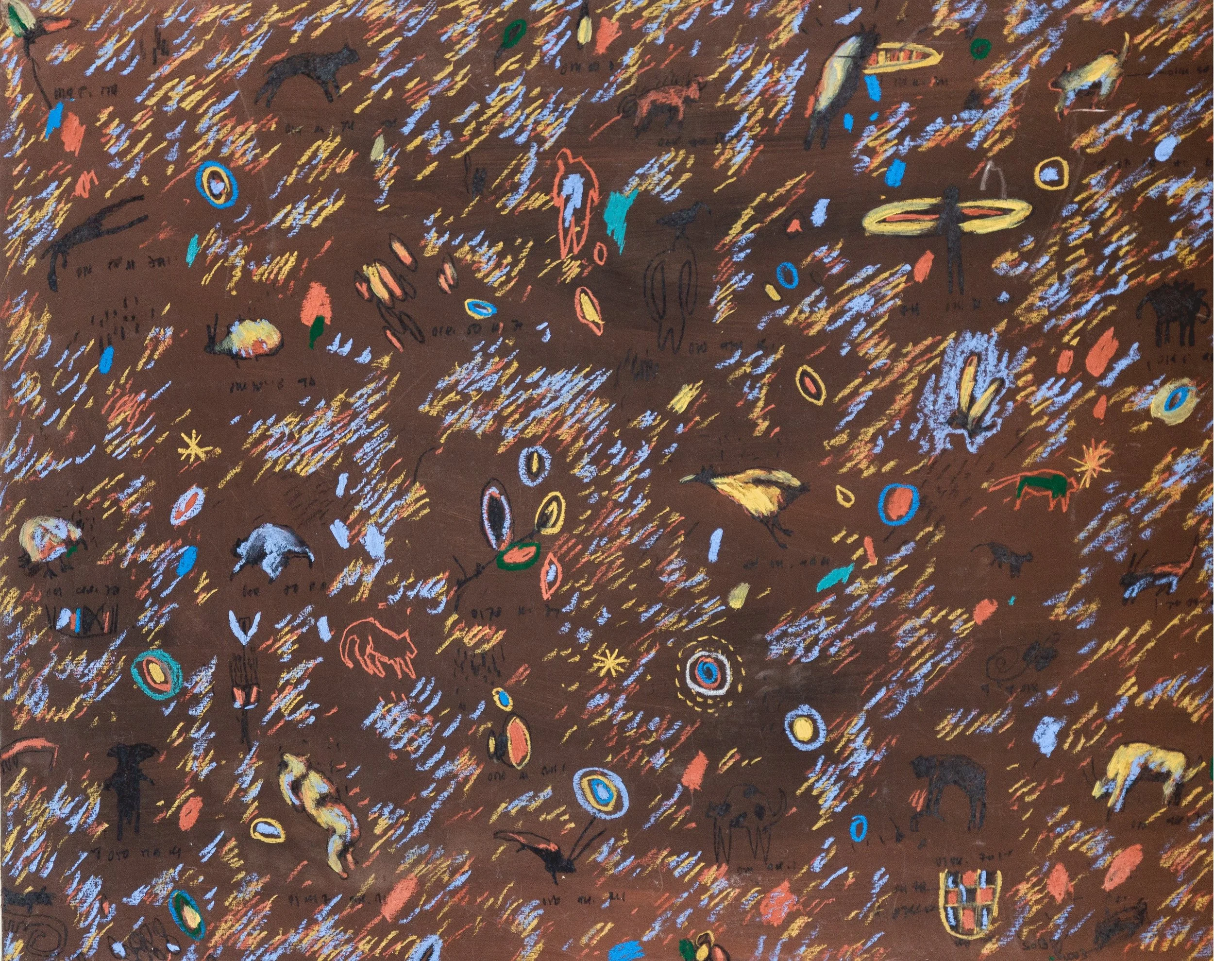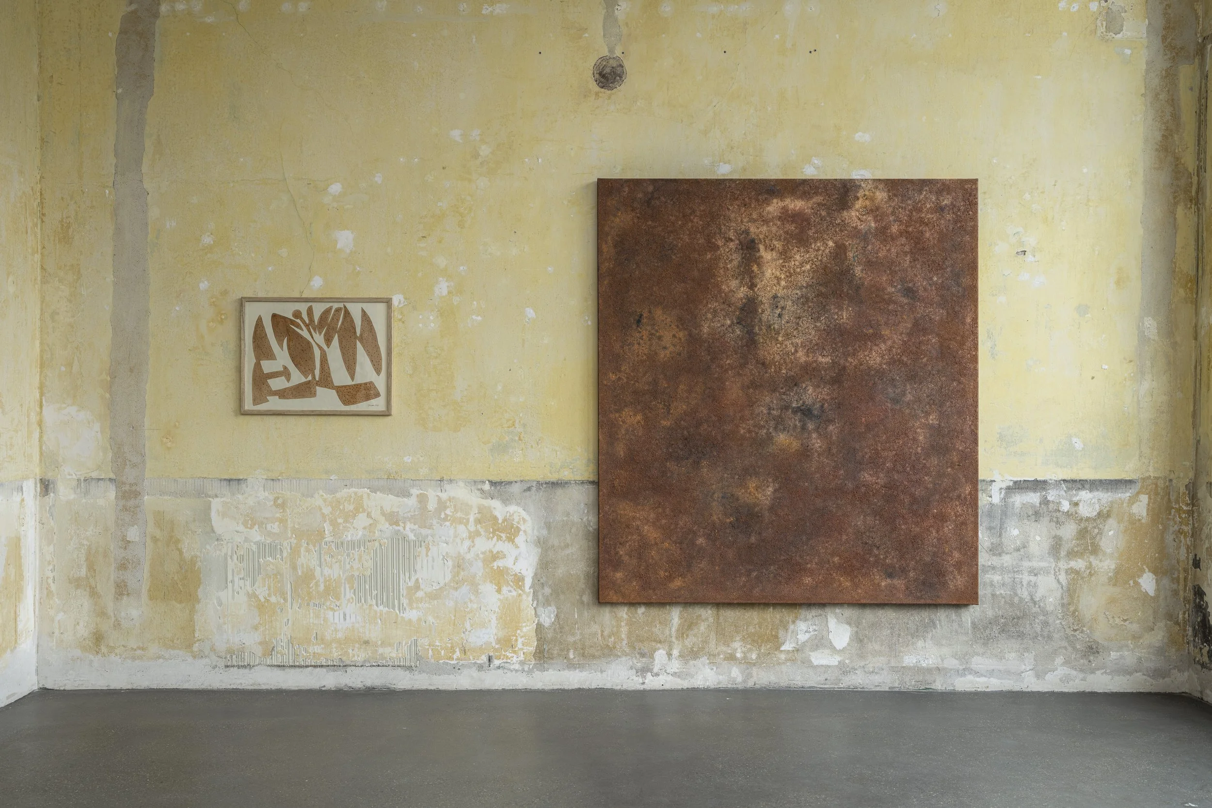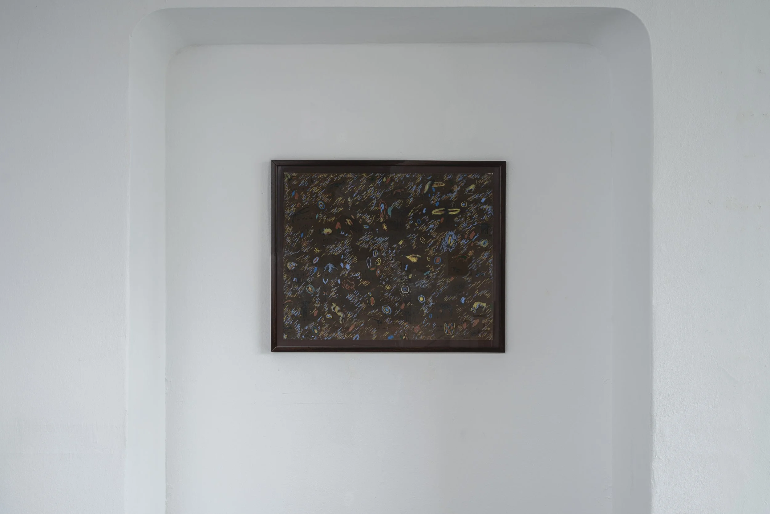 Aliou Diack applies the methods theorised by Joe Ouakam just as much as the extreme freedom or silent pedagogy (21) developed by Pierre Lods. Marked by his childhood spent in the forests on the outskirts of Dakar, the artist's canvases evoke the omnipresent nature of his youth. Using a technique akin to performance art, Diack (Re)activates his senses, sharpened by hours spent in nature, within the pictorial space. ‘I paint as a farmer works, sowing his seeds and ploughing the land’. Diack places the canvas outside, on the ground, sprinkles it with pigments and waits to see what happens. As the winds and rains blow, random shapes emerge, as if drawn by nature, and the painter then intervenes, often with charcoal, to support one or other of the suggested forms. Sometimes he even walks on the canvas, just as he used to walk through the forest. ‘The canvas is abused so that it can marry with the earth. I want the pigments and shapes to absorb the canvas, for it to disappear.” (22)